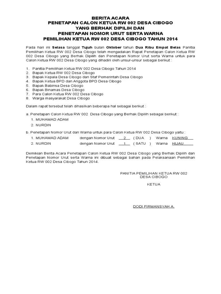 Surat berita acara pemilihan rt. Berita acara pemilihan menindak lanjuti keinginan warga untuk pemekaran wilayah aa9, ab3, ab4, dan ab5 maka pada tanggal 20 november 2010 diadakan berita acara pelaksanaan pemilihan ketua rt. Usahakan kalian download sebagai review saja, belilah cd original atau kalian beli secara online seperti di itunes untuk mendukung semua artis agar terus berkarya. Berikut adalah beberapa jenis berita acara yang sering digunakan beserta fungsinya. Hal ini mungkin saja jika pimpinan sedang tidak masuk kerja atau memiliki kesibukan lain yang lebih penting daripada.