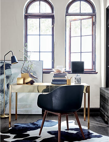 To get the job done, the experts at style by emily henderson placed the sofa against the longest wall and then put the desk directly in front of the window office home space. Thinking outside of the four walls concept is a great small home office idea!